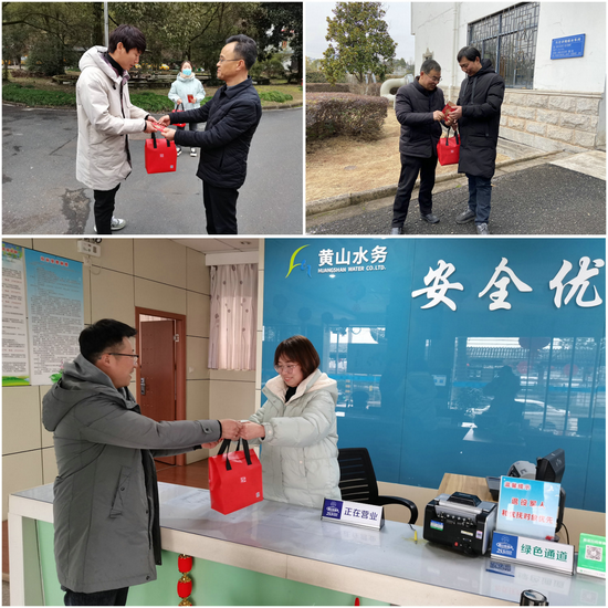 下午5:30,除夕大年夜,黃山水務(wù)控股集團有限公司總經(jīng)理倪世海、專職監(jiān)事阮國新分別帶隊,帶著熱騰騰的年夜飯和新年祝福來到一水廠、二水廠、一污廠、二污廠以及客戶服務(wù)熱線,親切看望依然堅守在一線崗位上的員工們,向他們表示誠摯慰問,感謝他們對水務(wù)集團的默默付出和堅守,叮囑他們春節(jié)期間認真工作,并預(yù)祝他們春節(jié)快樂。