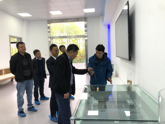 朱愛民一行先后參觀了水生生物預(yù)警池、跌水曝氣氧化池、PAC加藥間、清水池、二級泵房及凈水車間等生產(chǎn)工藝全流程,對各個構(gòu)筑物及設(shè)備的主要功能和運(yùn)行情況進(jìn)行了詳細(xì)的了解與查看。