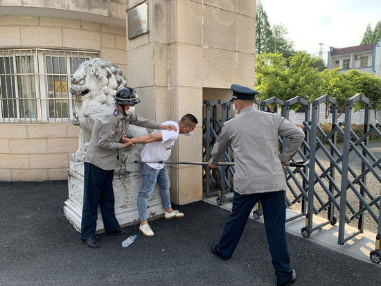演練模擬1名攜帶不明液體水瓶的“恐怖份子”試圖攀爬二水廠大門強行進入廠區,企圖破壞水廠供水安全的場景。演練前,保安隊長向參練保安及當班人員講解了如何正確使用防恐器材并對演練細節進行了指導。演習中,參演人員通過監控視頻及時發現“恐怖份子”,迅速出擊,利用反恐器械成功地將其制服,圓滿完成安保任務。