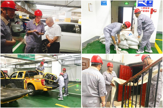 演練模擬了仙人洞新苑DN150出水管卡箍脫落致使地下室二次供水泵房突發積水的應急處置和百鳥亭安置區地下室二次供水泵房洪水倒灌突發狀況拆除設備并加裝臨時供水的應急處置兩個場景。供水服務熱線同時接到兩個小區反映二次供水泵房出現嚴重積水請求予以幫助的電話,熱線立即通知應急搶險隊,啟動二次供水搶險預案應急響應。整個過程根據現場具體汛情,采取相應的針對性措施,同時配合物業向小區居民做好臨時停水的解釋工作。