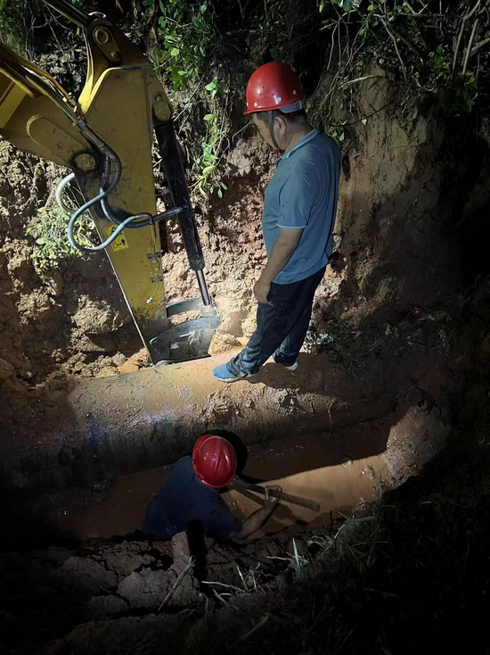 由于該區域人口密集,供水管網周圍鋪設了其他通信光纜和燃氣管道等基礎設施,給土方開挖和搶修工作帶來很大的困難。為了盡快恢復供水,搶修負責人決定就近調用機械設備,采取機械和人工相結合的方式進行土方開挖,提高搶修進度。在經過6個小時的緊張有序的作業,于次日凌晨1時10分恢復通水,比預計恢復供水時間提前了5個小時。