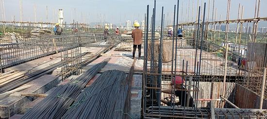 針對高溫天氣帶來的不利影響,各項目施工現場采取“抓兩頭、歇中間”錯時施工和輪換作業的辦法,優化生產環節,錯開高溫時段進行現場作業。嚴格做好防疫防暑工作,在項目現場配備休息室、茶水間、遮陽棚、流風機等防暑降溫設施,定時給工人配發防暑降溫藥品,以此保證工人的人身安全和健康。此外,結合高溫天氣對各工種及工程進度的影響,通過“工地黨課+現場教育”的形式,增加安全教育頻次,確保以安全保質量、以安全提進度。